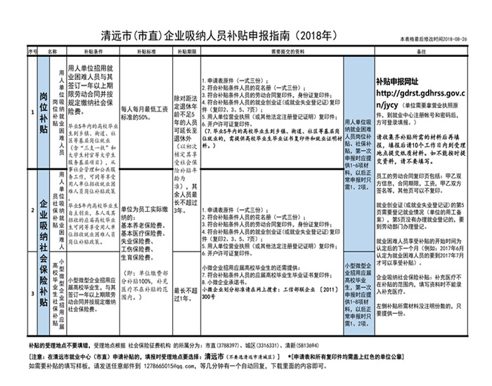 清遠市(市直)企業(yè)吸納人員補貼申報指南(2018年)