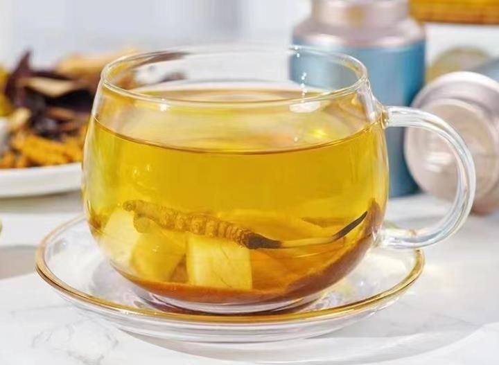 將冬蟲夏草和黃芪洗凈后用溫水泡軟備用,紅棗洗凈備用。取一壺開水,加入泡軟的冬蟲夏草、黃芪和紅棗,蓋上蓋子燜煮15-20分鐘。待茶湯慢慢變?yōu)樽丶t色時(shí),即可倒入茶杯中飲用。
