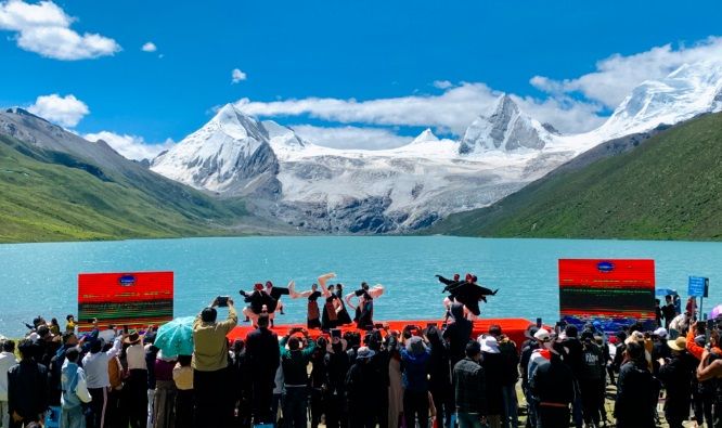 天高地闊,白云祥和,雪山巍然;清風(fēng)徐徐,青草依依,湖水湛藍(lán)。薩普雪山融水匯聚成一條清澈的河,從眼前激流直下。7月15日上午,一場別具特色的文化旅游賽事活動(dòng)在這里拉開序幕。一場慷慨激昂、內(nèi)容豐富的主題推介演講,一首首悠揚(yáng)高亢、直擊心靈的民族歌曲,一幕幕輕盈靈動(dòng)、鏗鏘有力的特色舞姿,引得現(xiàn)場數(shù)百名觀眾一陣陣掌聲雷動(dòng)和直播間數(shù)十萬用戶點(diǎn)贊、好評不斷,成功向區(qū)內(nèi)外推介了比如縣得天獨(dú)厚的旅游資源和特產(chǎn)資源,為旅游事業(yè)和經(jīng)濟(jì)社會(huì)高質(zhì)量夯實(shí)了宣傳工作基礎(chǔ)。