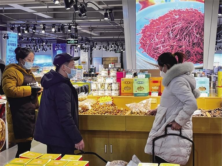1月9日,記者來到西藏特產(chǎn)倉儲超市(乃倉店)進(jìn)行實(shí)地走訪。走進(jìn)超市,牦牛肉干、藏紅花、藏香豬肉、酥油茶、靈芝孢子粉等數(shù)百種西藏特產(chǎn)讓人眼花繚亂。雖是工作日,但前來購買特產(chǎn)的市民絡(luò)繹不絕。“馬上過年了,想挑選一些西藏特產(chǎn)帶回去。”前來購買特產(chǎn)的李女士說,“今天主要買了西藏本地產(chǎn)的蟲草酒和藏蜜,送長輩很合適。”