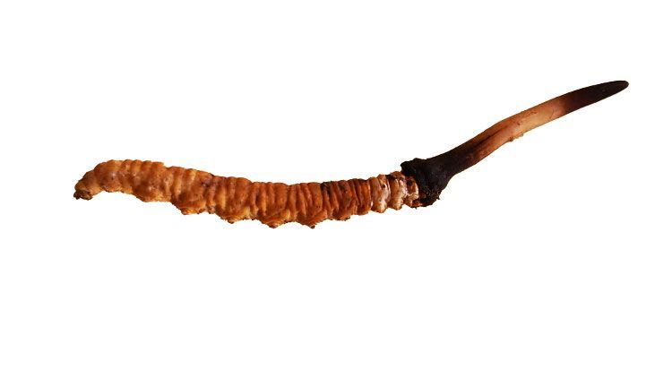 • 人工蟲草的草頭上下一樣粗,顏色較為單一,缺乏自然多樣性,漸變色不明顯,草頭基部沒有膨大,包不住蟲子頭部。